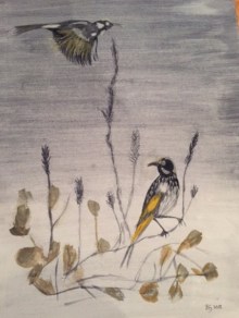 New Holland Honeyeaters Watercolour painting with gouache and pastel on Arnhem 1618 100% cotton paper. Posted on June 26, 2018July 11, 2018