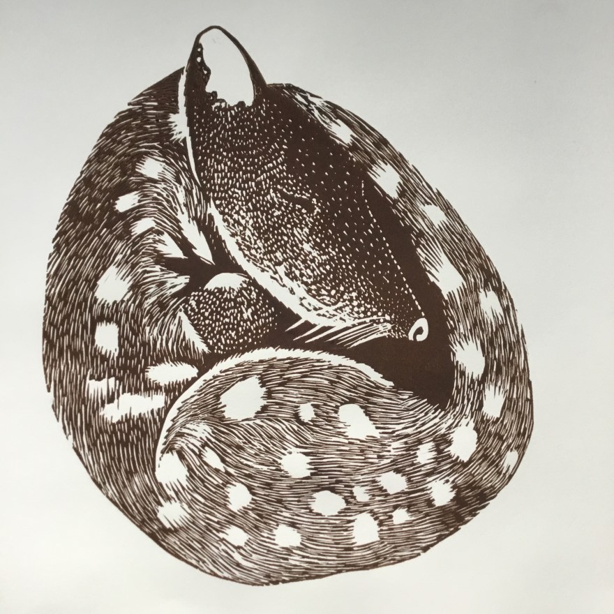Sleeping Quoll – Linocut, sepia ink on 100% cotton paper (56 x 56cm)