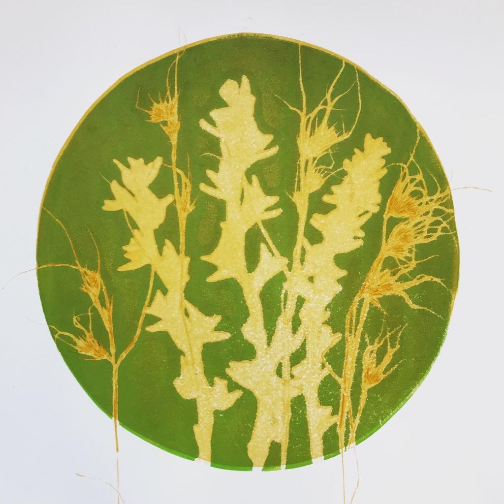 These are nine different images of etchings printed over monotypes or watercolour-enhanced etchings (#1 and #2). The Basalt Leek Orchid is a rare and endangered plant species found in damp and undisturbed pockets of the western volcanic plains. It is a small and well-hidden species, often overlooked due to it’s short flowering period.
